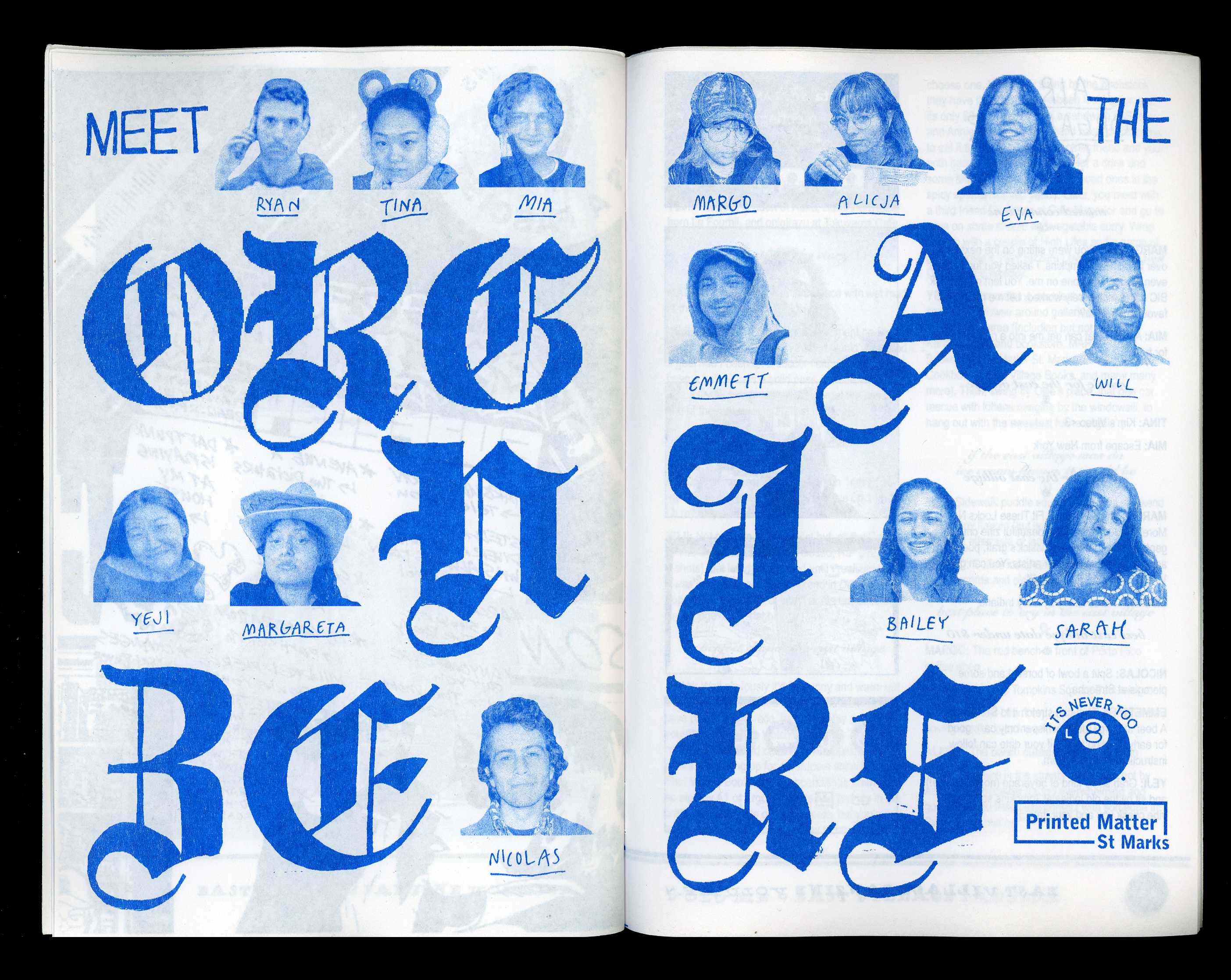Layout spread and typographic illustration for 2024 East Village Fanzine, honoring the sexiest zine fair organizers of NYC.